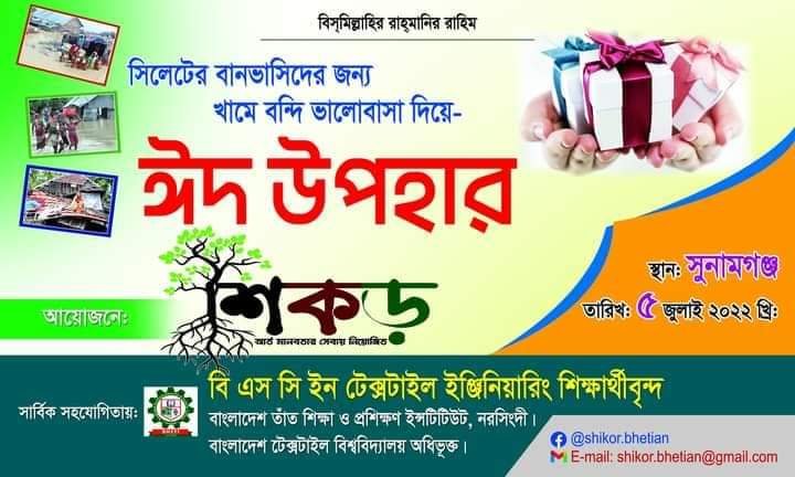ক্যাম্পাস থেকে ঈদের ছুটি ঘোষণা হওয়ার  পর শিক্ষার্থীরা যখন বাড়ির পথে ছুটছে তখনও  ক্যাম্পাসের “শিকড়” টিম ঈদ উপহার নিয়ে পৌঁছে যায় সিলেটের সুনামগঞ্জ উপজেলায়।