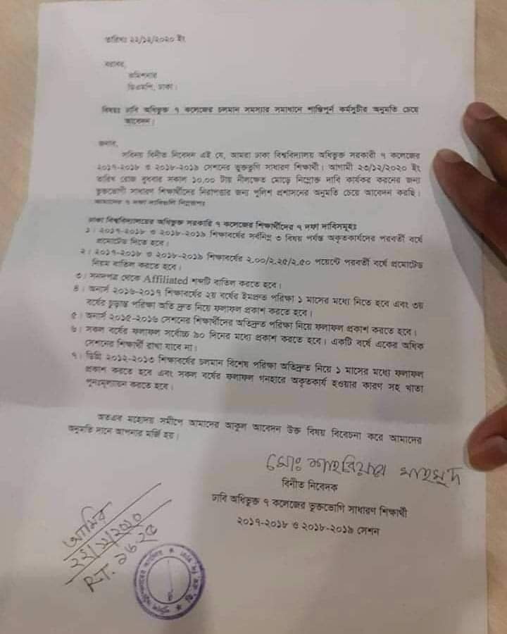 প্রঙ্গত, ইতোপূর্বে ছয় দফা দাবি নিয়ে আন্দোলন করে আসছিলেন ‘অধিভুক্ত’ সাত কলেজের শিক্ষার্থীরা।