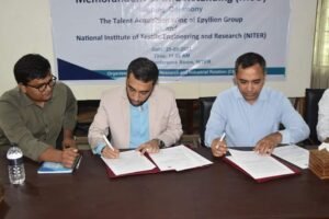 ইন্ডাস্ট্রি-একাডেমিয়া কোলাবরেশনের লক্ষ্যে বাংলাদেশের টেক্সটাইল শিল্পের গবেষণা ও উদ্ভাবনে যৌথভাবে কাজ করবে সাভারের টেক্সটাইল গবেষণা শিক্ষাপ্রতিষ্ঠান ন্যাশনাল ইনস্টিটিউট অফ টেক্সটাইল ইঞ্জিনিয়ারিং এন্ড রিসার্চ (নিটার) এবং বাংলাদেশের স্বনামধন্য অন্যতম সেরা শিল্পপ্রতিষ্ঠান ইপিলিয়ন গ্রুপ(The Talent Acquisition Wing of Epyllion Group)। এ কাজে পারস্পরিক জ্ঞান বিনিময়ের উদ্দেশ্যে উভয় প্রতিষ্ঠানের মধ্যে সমঝোতা স্মারক (এমওইউ) স্বাক্ষরিত হয়েছে। এই চুক্তির ফলে নিটারের শিক্ষার্থীরা ইপিলিয়ন গ্রুপে চাকরির, ইন্টার্নশীপ, ইন্ডাস্ট্রি ভিজিট সহ গবেষণায় সুযোগ সুবিধা পাবেন।